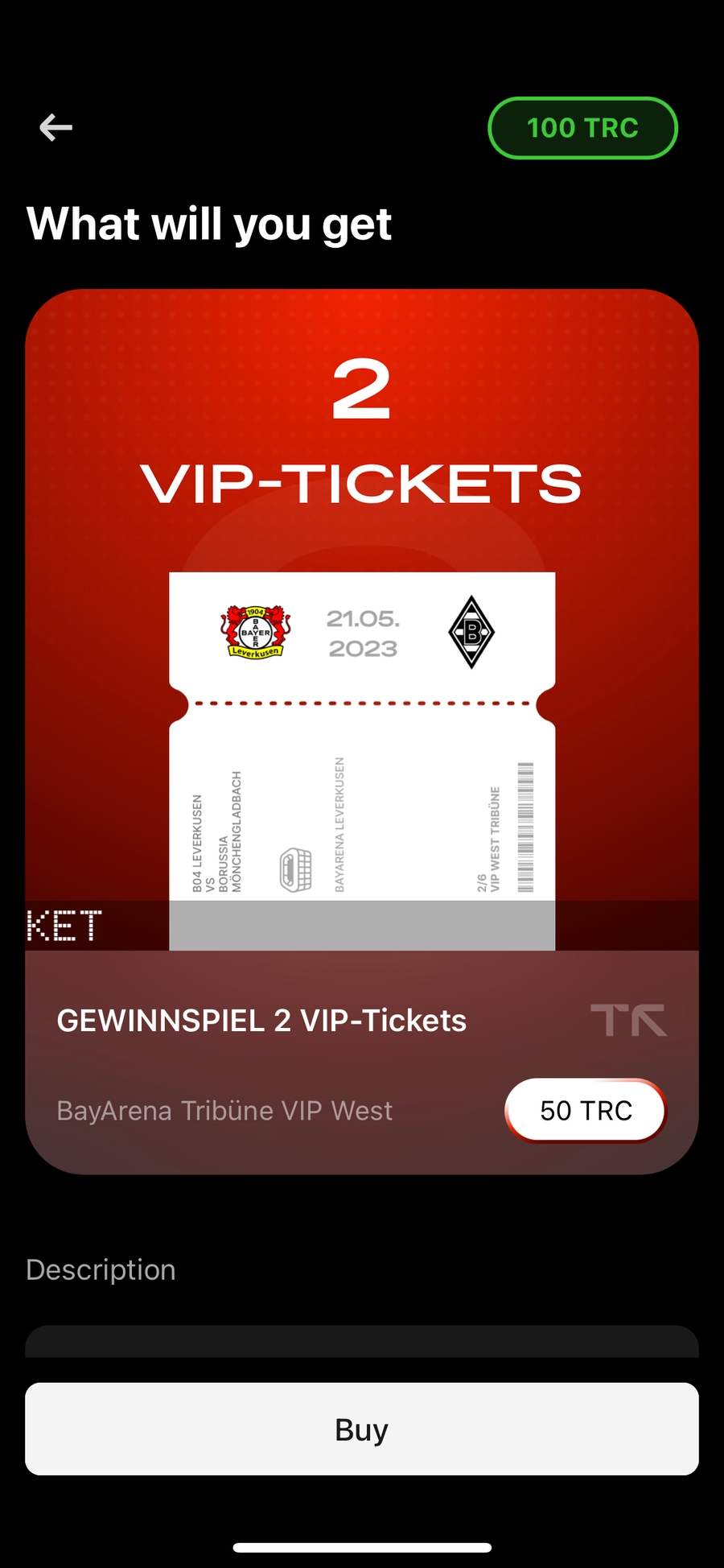 Im Store kannst du deine TRC gegen eine Vielzahl attraktiver Wertgegenstände und exklusiver Fan-Erlebnisse eintauschen. Dazu gehören Match Worn Trikots, signierte Bälle, VIP-Tickets oder andere besondere Merchandise-Artikel.