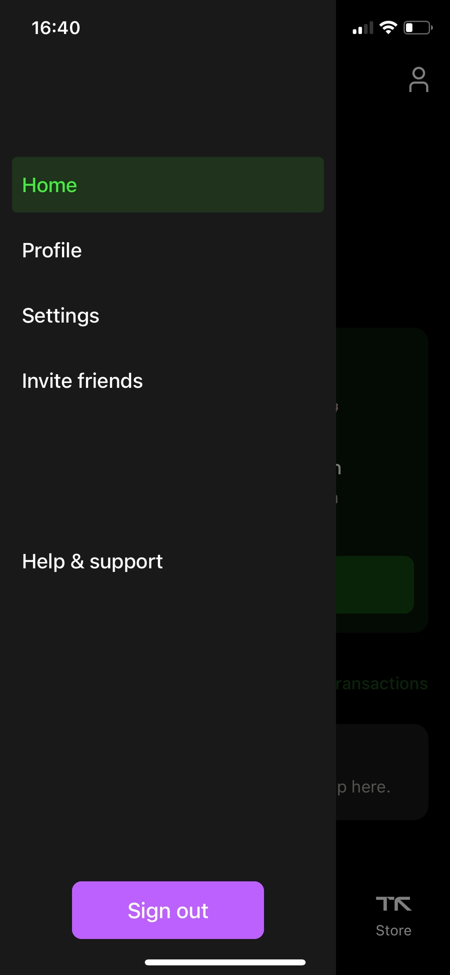 Über die Leiste am unteren Bildschirmrand navigierst du durch die Hauptfunktionen der App. Wenn du auf das Figur-Icon oben rechts klickst, öffnet sich das Menü. Von dort aus gelangst du zu deinem Profil, den App-Einstellungen, dem Support-Bereich oder zurück zum Startbildschirm.