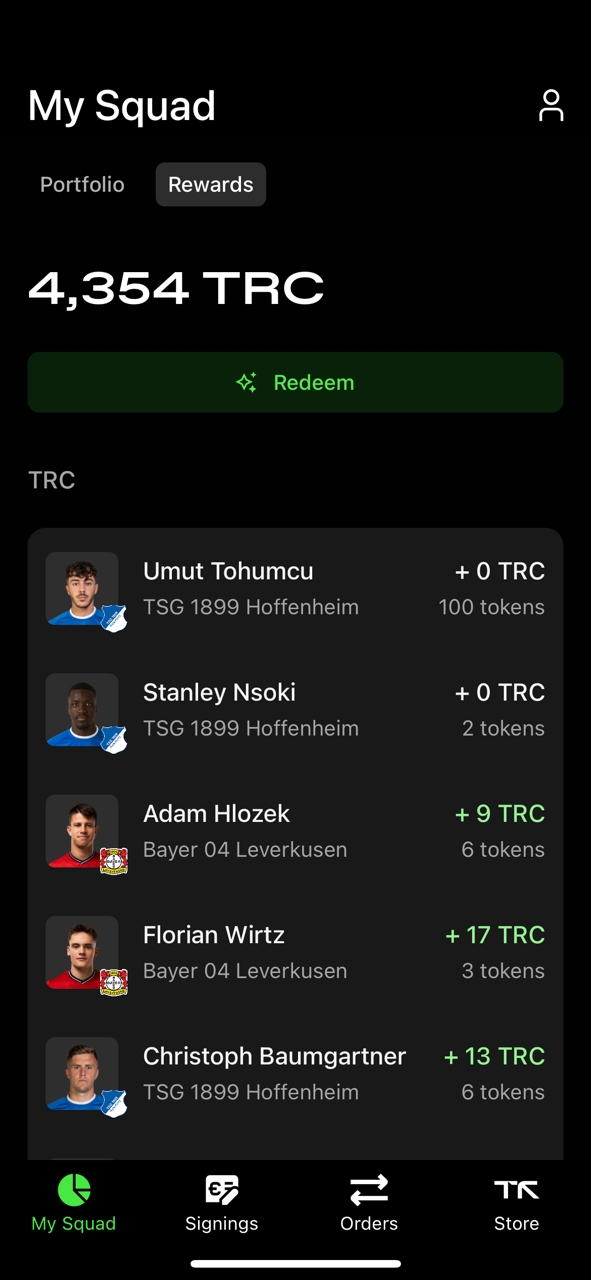Der Bereich „My Squad“ ist deine Startseite und deine zentrale Schaltzentrale. Hier findest du dein aktuelles Portfolio, eine Übersicht deiner offenen und ausgeführten Aufträge sowie den aktuellen Stand deiner Performance Credits (TRC).