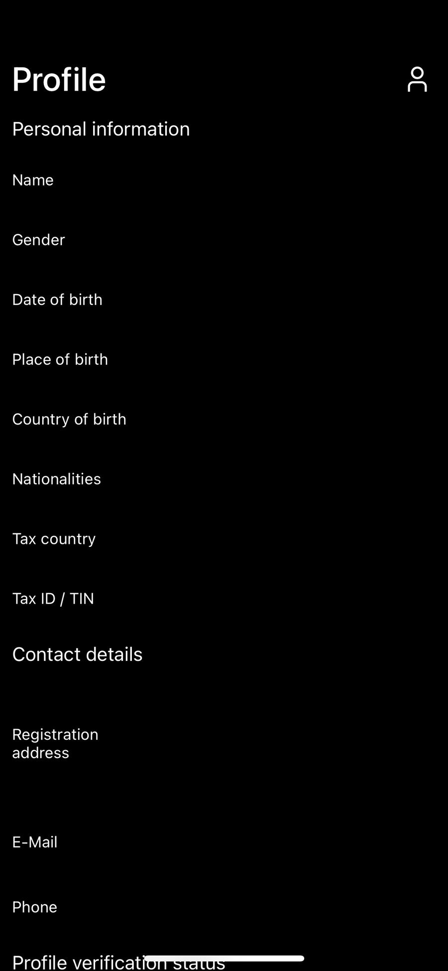 Über das Figur-Icon oben rechts im Bildschirm gelangst du jederzeit in das Menü und zu deinem Profil. Hier kannst du all deine persönlichen Daten einsehen und beispielsweise deine E-Mail-Adresse oder Telefonnummer ändern. In deinem Profil findest du zudem den aktuellen Status deiner Verifizierung.